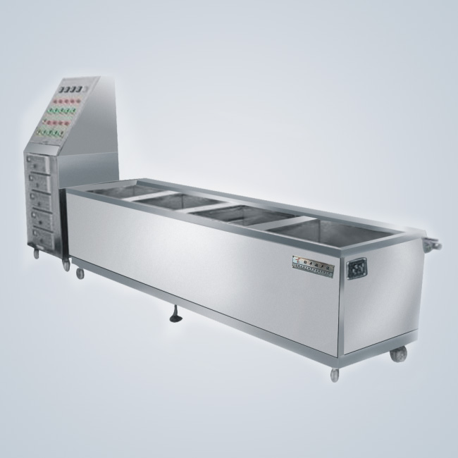 首先,超聲波發(fā)作器將交流電源轉換為超聲波頻率電源,頻率范圍普通為16khz-68khz,最高可達1000khz,然后經(jīng)過電纜將電源傳輸?shù)綋Q能器。超聲波換能器通常由幾個聲頭并聯(lián)組成一個聲陣列。在這里,電能轉化為同頻率的機械振動能,傳輸?shù)角逑此洌骨逑匆簶嫵沙暡▓龅膩砘卣駝?。在超聲場中,由于振動負壓區(qū)四周的液體來不及補充,構成大量微小的真空泡。當正壓力降臨時,微小的氣泡在壓力下忽然閉合,液體之間的猛烈碰撞產(chǎn)生宏大的沖擊波,能夠構成成千上萬的大氣壓和瞬時高溫,這就是超聲波的“空化”效應。空化具有很好的清洗和乳化作用,使油污能從清洗工件外表別離出來,從而到達快速清潔清洗的目的。